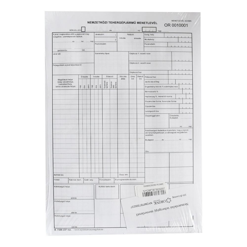 Nemzetközi tehergépjármű menetlevél szabadlap A4, méret B.7300-237 200 garnitúra/csomag