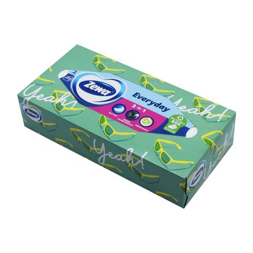 Jó választás a család minden tagjának: az új Zewa Everyday dobozok megbízhatóan jó minőségű papír zsebkendőt kínálnak. Orrfújáshoz, kozmetikai felhasználásra, kéztisztításra, gyümölcsök letörlésére... nincs olyan feladat a mindennapokban, amelyre ne tudnának megoldást. A dobozokat színes, vidám, könnyed design teszi mindenki kedvencévé. Katalóguskód: 55969 Hiteles tájékoztatás: Elkötelezettek vagyunk termékeink biztonságának garantálásáért, nyomon követjük a termékbiztonsággal kapcsolatos valamennyi európai uniós és hazai szabályozást és biztosítjuk termékeink azoknak történő megfelelését. Az EU 2023/988-as számú Általános Termékbiztonsági Rendeletét (GPSR) is alkalmazzuk, így ha a termékeink biztonságát illetően fogyasztóként kérdése, észrevétele van, vagy esetleg balesetről van tudomása, kérjük, írja meg nekünk. GPSR: Essity Aktiebolag (publ). Box 200, SE-101 23, Stockholm, Sweden, torkcontact@essity.com , www.essity.com
