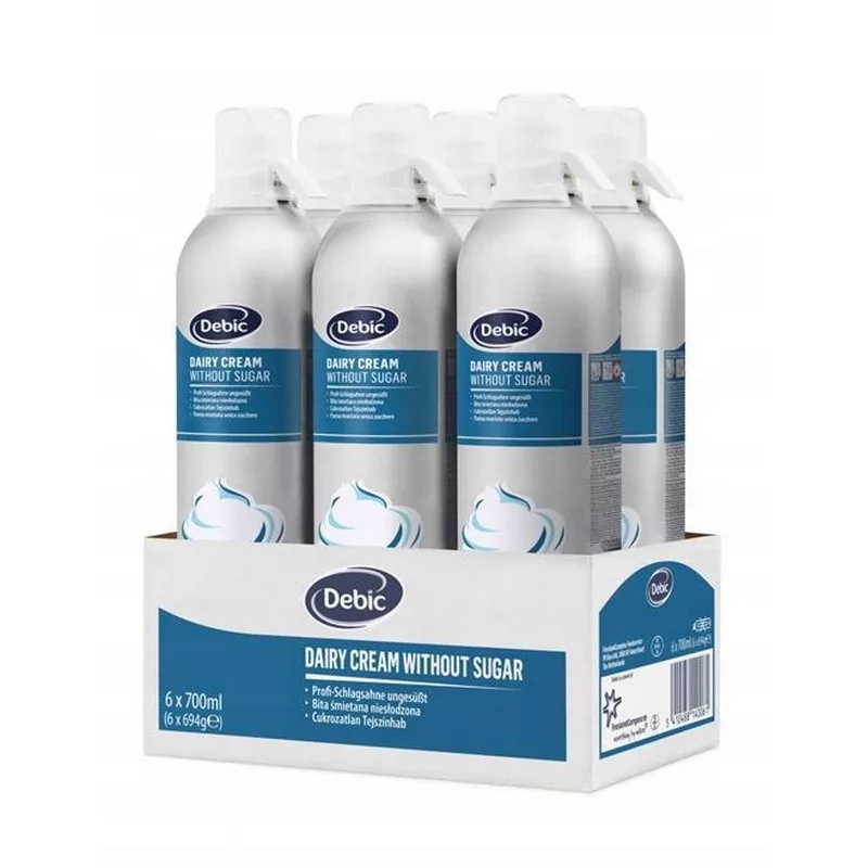 Debic zuckerfreies Schlagsahnespray 6x700 ml, (Einfach verpackt)