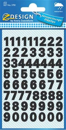 Matrica, számok, 0-9, AVERY ZWECKFORM, fekete, 120 matrica/csomag - /csom (2 lap)