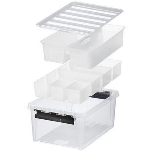 Műanyag tárolódoboz, fekete fogantyúkkal, 7 rekeszes, SMARTSTORE "Classic 15", átlátszó. - /db