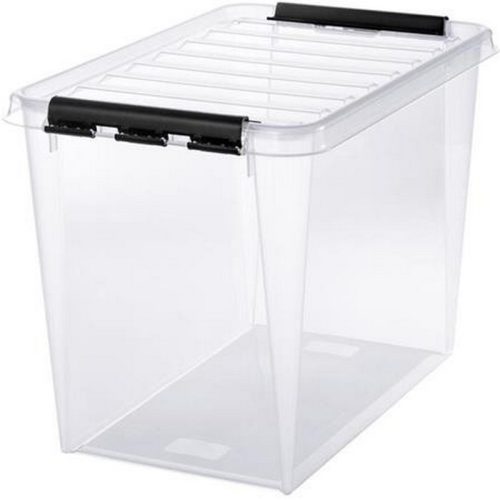 Műanyag tárolódoboz, 61 liter, fekete fogantyúkkal, SMARTSTORE "Classic 65", átlátszó. - /db