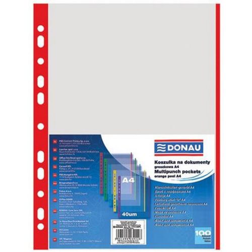 Genotherm, lefűzhető, színes szélű, A4, 40 mikron, narancsos felület, DONAU, piros. - /csom (100 db)