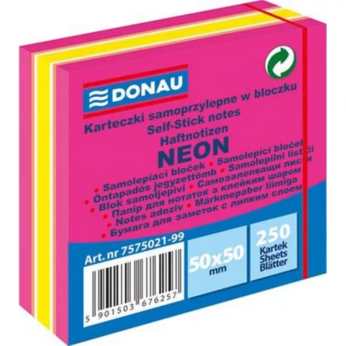 Öntapadó jegyzettömb, 50x50 mm, 250 lap, DONAU, neon rózsaszín. - /csom (250 lap)