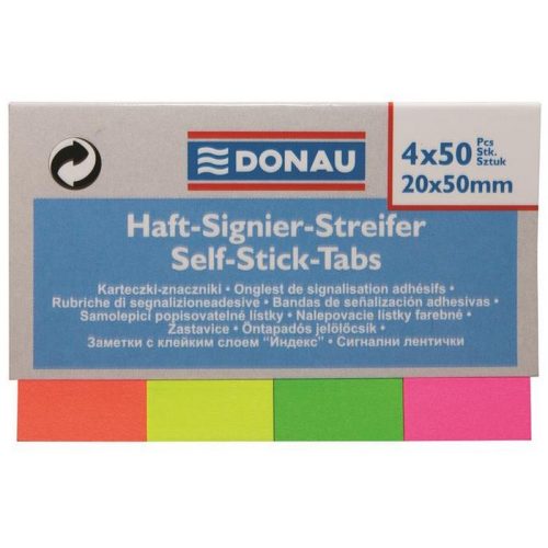 Jelölőcímke, papír, 4x50 lap, 20x50 mm, DONAU, vegyes szín. - /csom (200 lap)