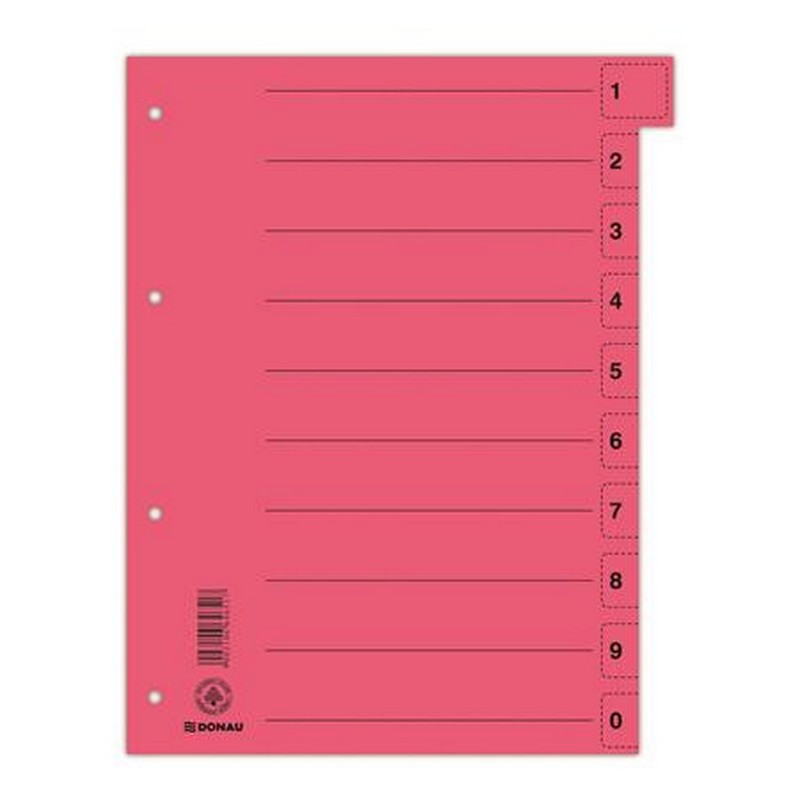 Regiszter, karton, A4, mikroperforált, DONAU, piros. - /csom (50 db)