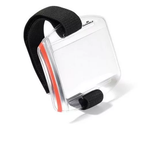 Azonosítókártya tartó, 1db kártyához, karra rögzíthető, DURABLE, áttetsző - /csom (10 db)