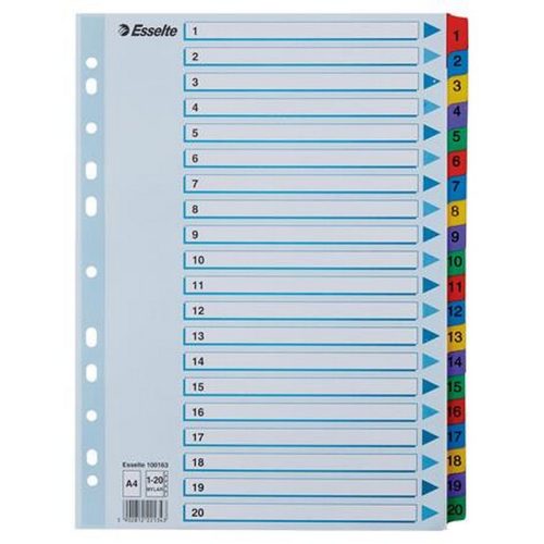 Regiszter, karton, A4, 1-20, ESSELTE "Mylar". - /db