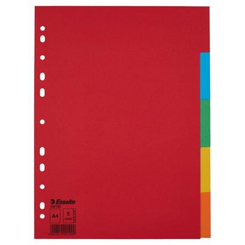 Regiszter, karton, A4, 5 részes, ESSELTE "Economy", színes