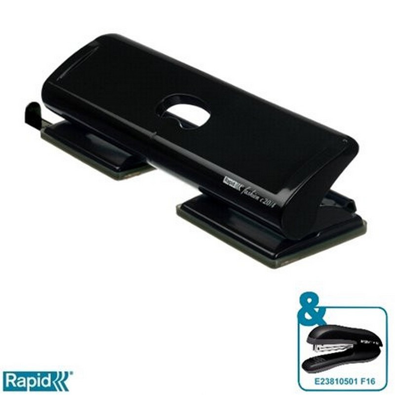 Lyukasztó, négylyukú, 20 lap, fém, RAPID "FC20/4", fekete. - /db