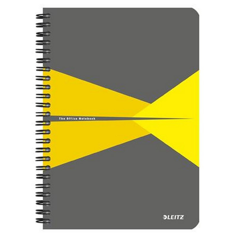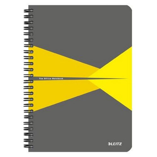 Spirálfüzet, A5, vonalas, 90 lap, laminált karton borító, LEITZ "Office", szürke-sárga. - /db