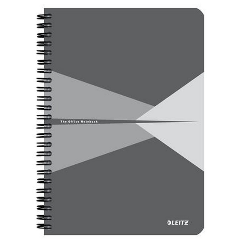 Spirálfüzet, A5, vonalas, 90 lap, laminált karton borító, LEITZ "Office", szürke. - /db