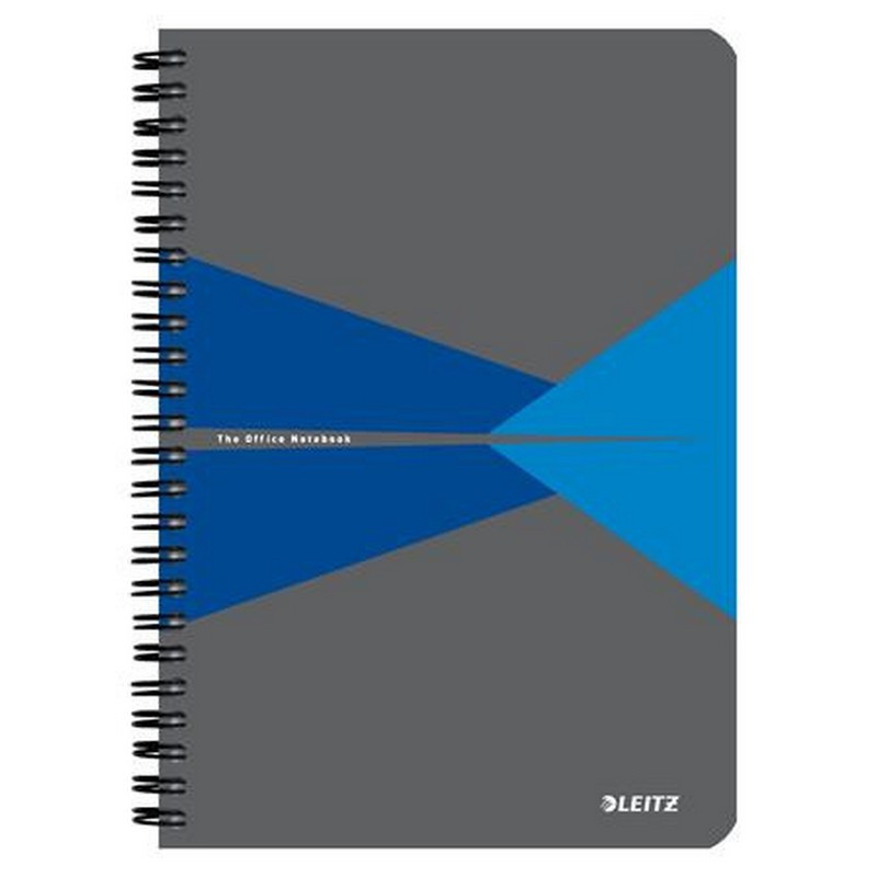 Spirálfüzet, A5, kockás, 90 lap, PP borító, LEITZ "Office", szürke-kék. - /db