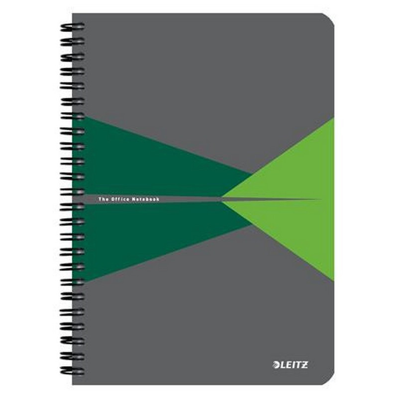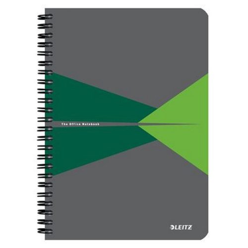 Spirálfüzet, A5, vonalas, 90 lap, PP borító, LEITZ "Office", szürke-zöld. - /db