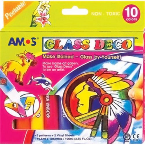 Üvegfóliafesték készlet, AMOS, 10 különböző szín. - /csom (10 db)
