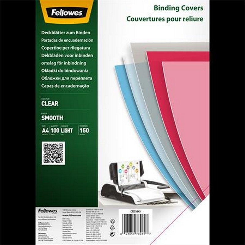 Előlap, A4, 150 mikron, PET, FELLOWES, víztiszta. - /csom (100 db)