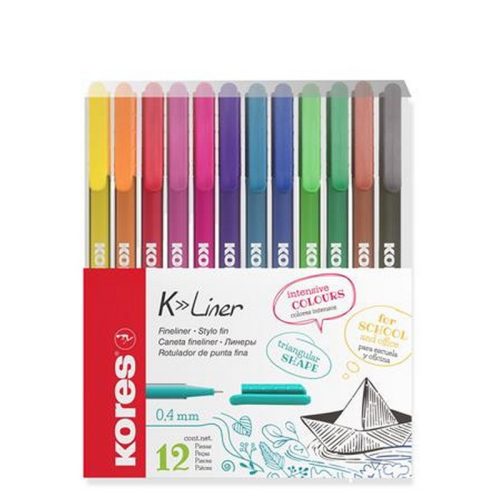 Tűfilc készlet, 0,4 mm, KORES "K-Liner", 12 különböző szín. - /készlet (12 db)