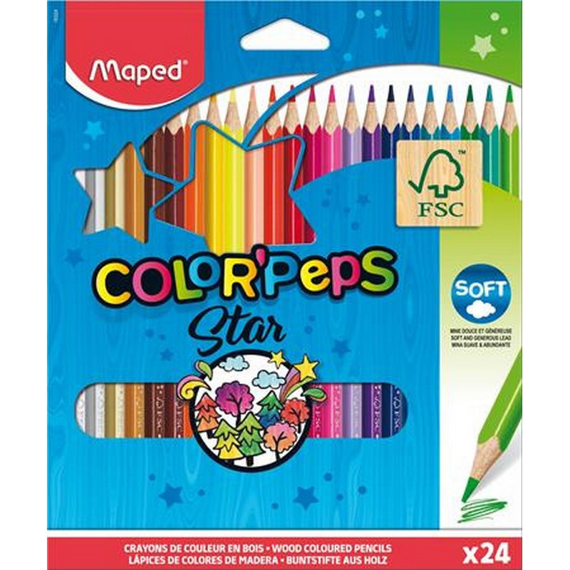 Színes ceruza készlet, háromszögletű, MAPED "Color`Peps Star", 24 különböző szín. - /készlet (24 db)