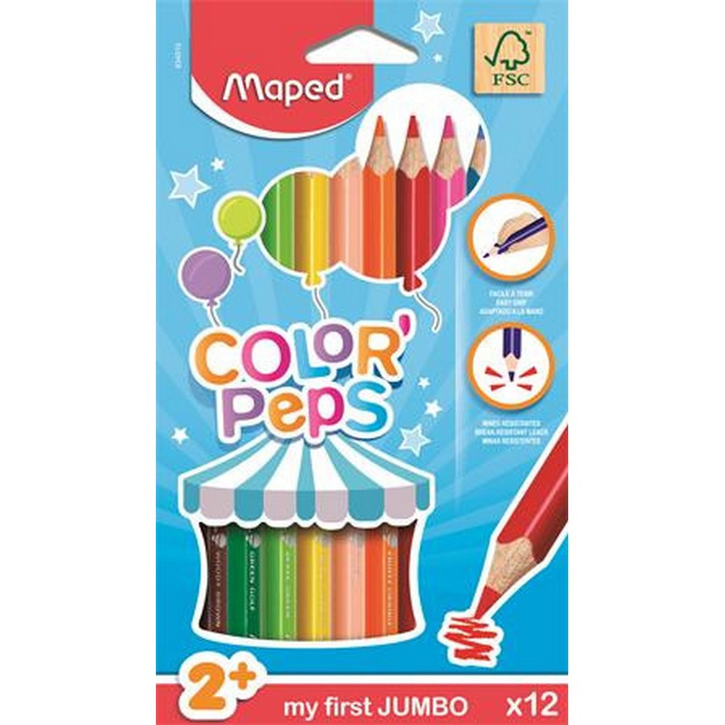 Színes ceruza készlet, háromszögletű, vastag, MAPED "Jumbo", 12 különböző szín. - /készlet (12 db)
