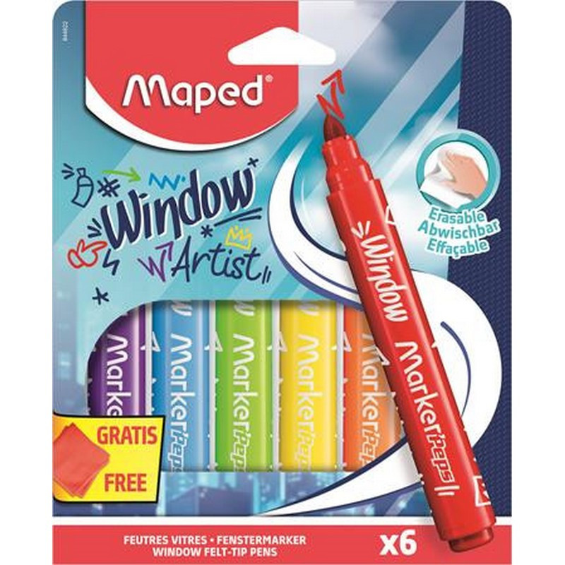 Ablakfilc készlet, vastag, törlőkendővel, 5 mm, MAPED "Marker`Peps", 6 különböző szín. - /bliszt (6 db)