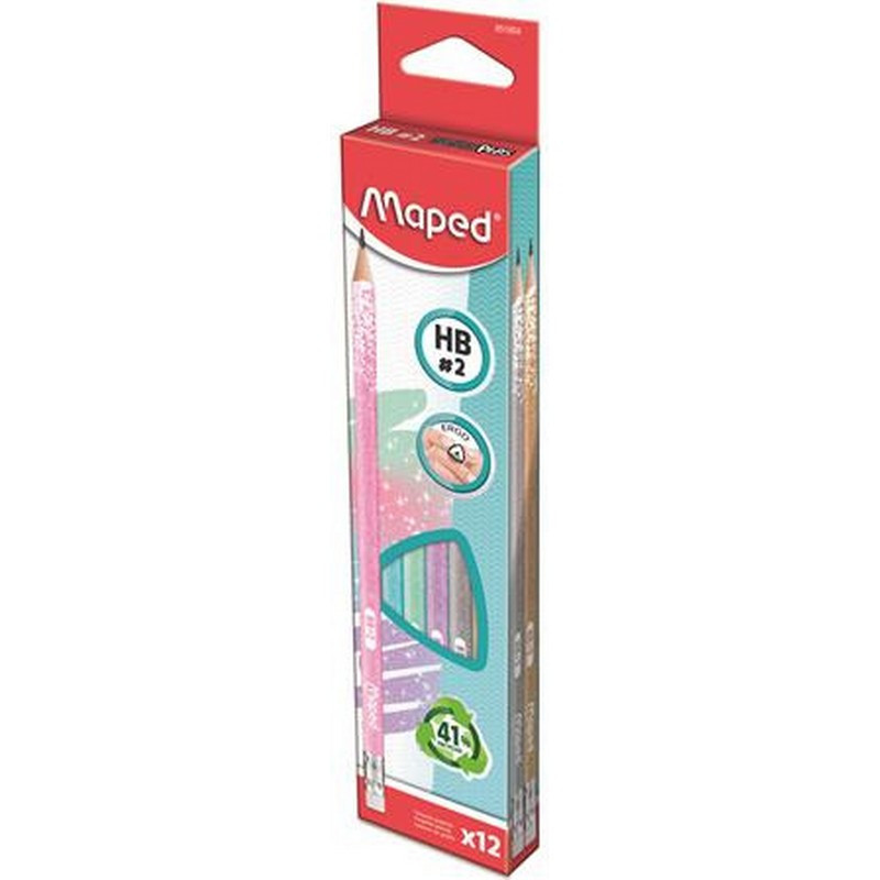 Grafitceruza radírral, HB, háromszögletű, MAPED "Black`Peps Glitter Deco", vegyes pasztell.... - /doboz (12 db)