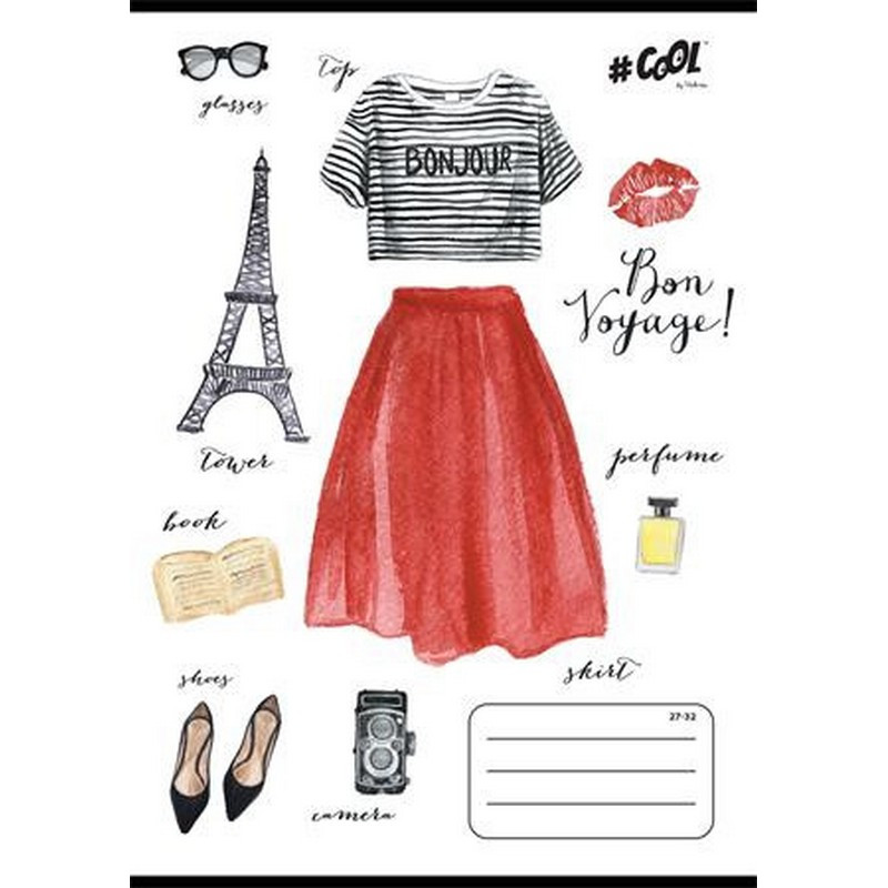 Füzet, tűzött, A5, kockás, 32 lap, COOL BY VICTORIA, "Boho fashion", 27-32. - /db