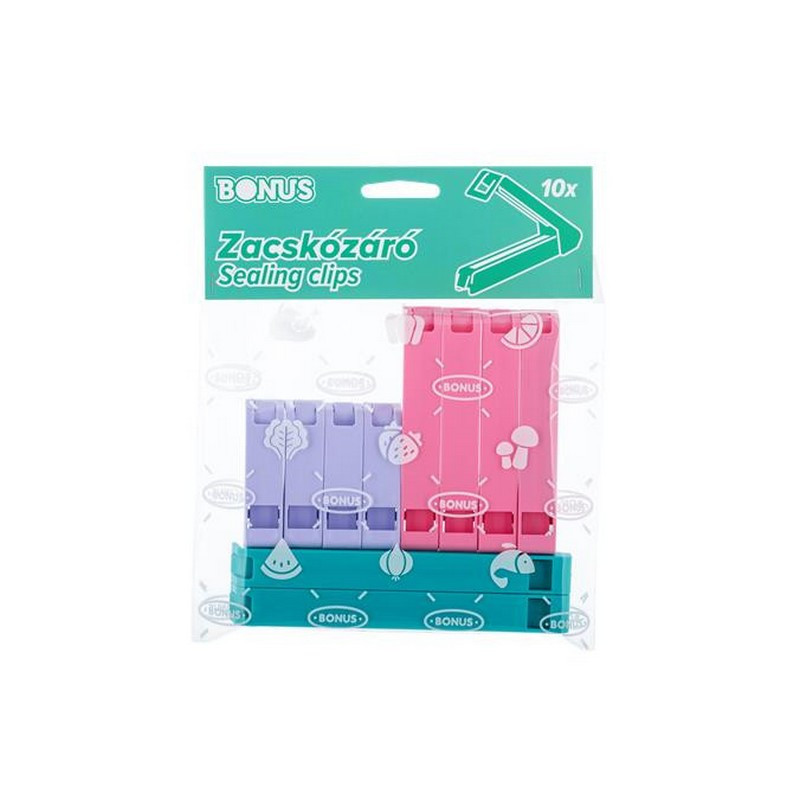 Zacskózáró csipesz, 10 db, BONUS, vegyes színek