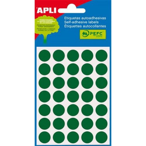 Etikett, 13 mm kör, kézzel írható, színes, APLI, zöld 175 etikett/csomag. - /csom (5 lap)