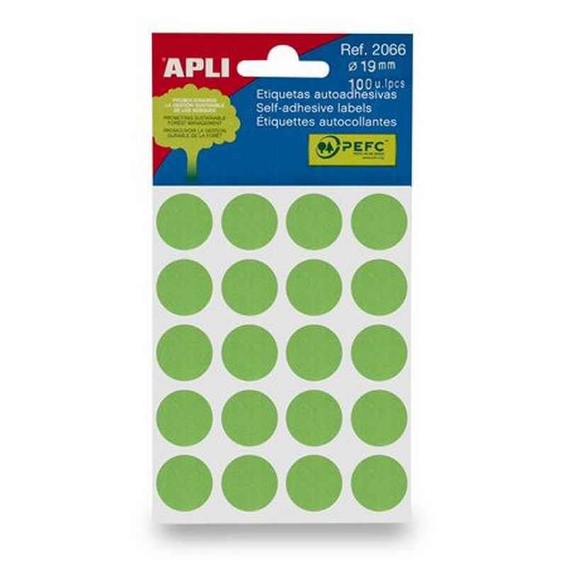 Etikett, 19 mm kör, kézzel írható, színes, APLI, zöld 100 etikett/csomag