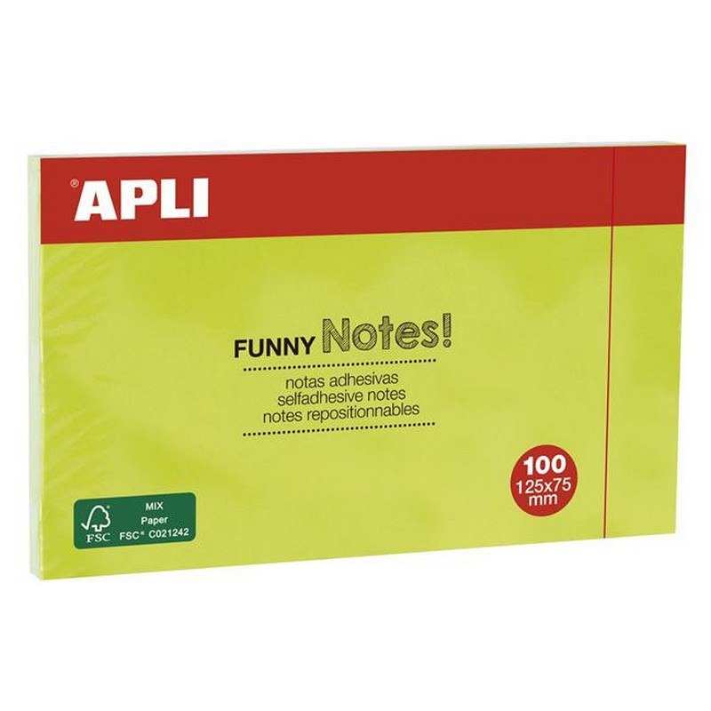 Öntapadó jegyzettömb, 125x75 mm, 100 lap, APLI "Funny", zöld. - /csom (100 lap)