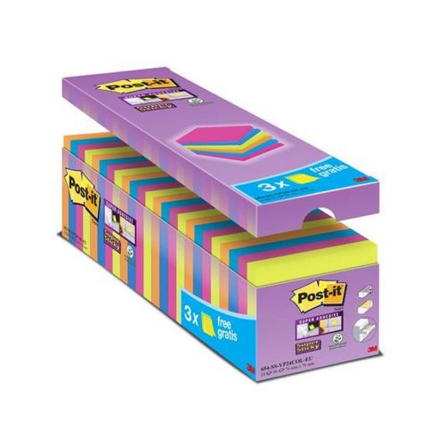 Öntapadó jegyzettömb csomag, 76x76 mm, 24x90 lap, 3M POSTIT "Super Sticky", vegyes. - /csom (2160 lap)