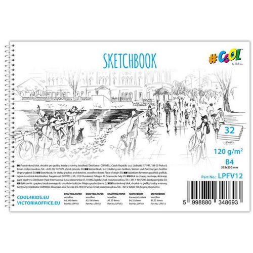 Vázlatfüzet, famentes, B4, spirál, 32 lap, COOL BY VICTORIA