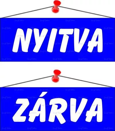 Információs tábla, 22x8,5 cm, kétoldalas, "Nyitva/Zárva", kék