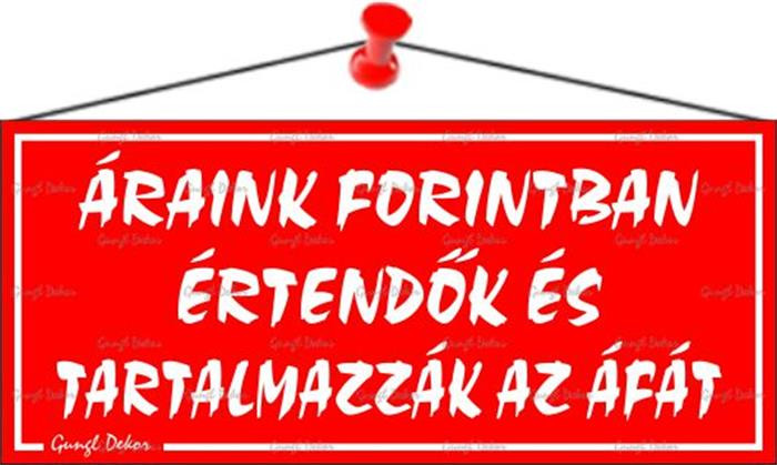Áraink forintban értendők és tartalmazzák az áfát! információs tábla