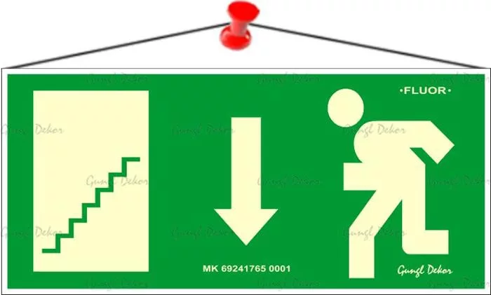 Információs tábla, 25x11,5 cm, fluoreszkáló, utánvilágítós, "Menekülési irány le, lépcső b... - /db
