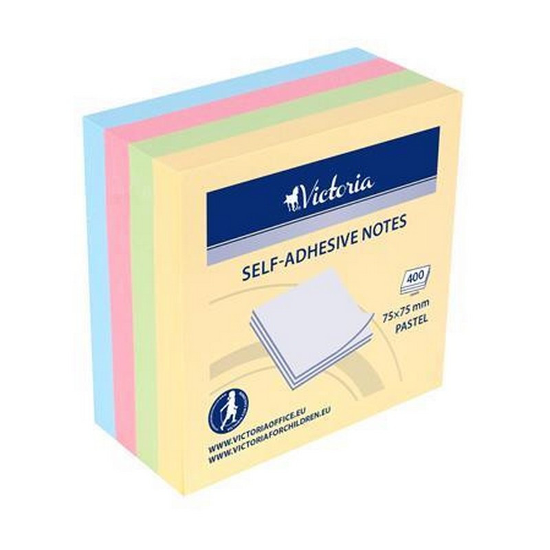 Öntapadó jegyzettömb, 75x75 mm, 400 lap, VICTORIA OFFICE, pasztell. - /csom (400 lap)