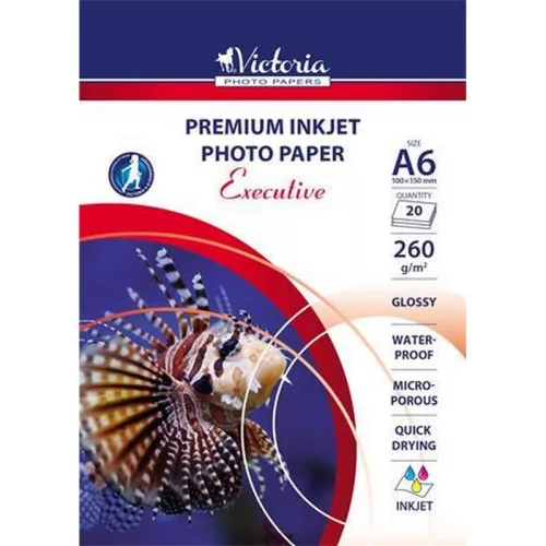 Fotópapír, tintasugaras, A6, 260 g, magasfényű, VICTORIA PAPER "Executive". - /csom (20 lap)