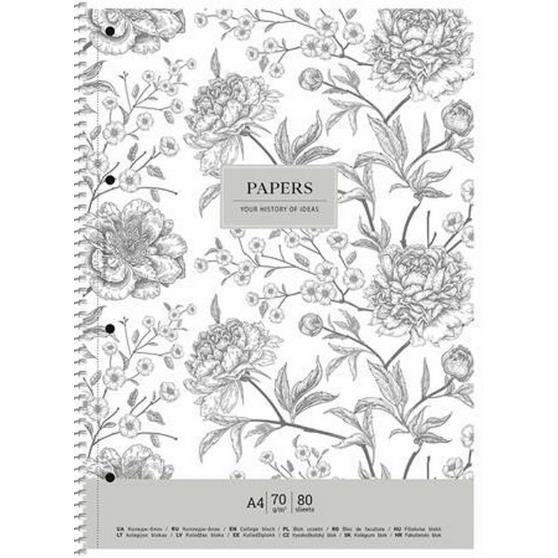 Spirálfüzet, A4+, kockás, 80 lap, SHKOLYARYK "Vintage flowers", vegyes. - /db