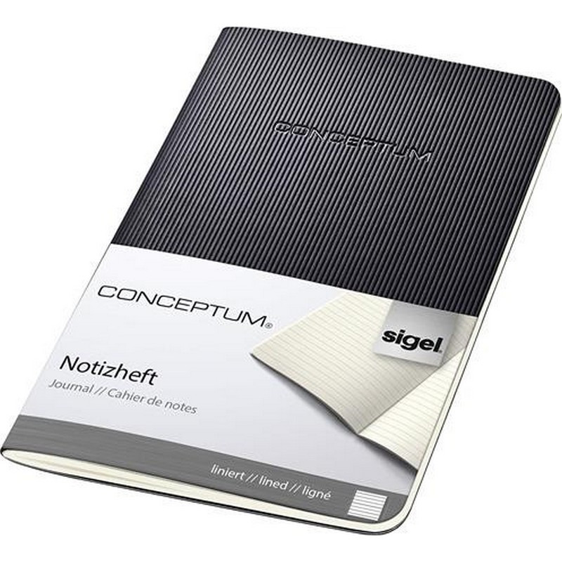 Füzet, exkluzív, A6, vonalas, 32 lap, puhafedeles, SIGEL "Conceptum", fekete. - /db