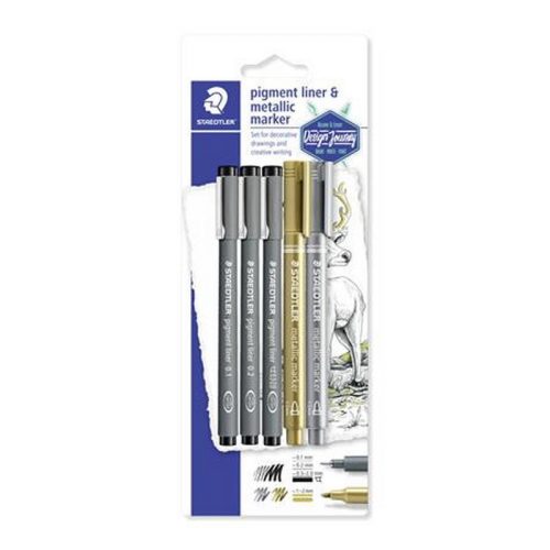 Tusfilc és dekormarker készlet, 5 db, STAEDTLER, "Pigment Liner 308". - /készlet (5 db)