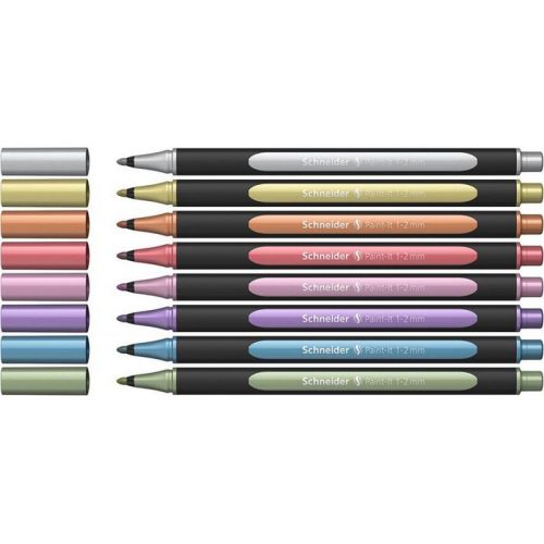 Metálfényű filctoll készlet, 1-2 mm, SCHNEIDER "Paint-It 020", 8 különböző szín