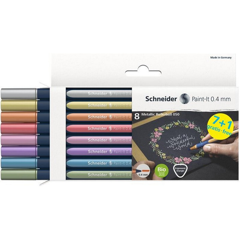 Metálfényű rollertoll készlet, 0,4 mm, SCHNEIDER "Paint-It 050" 8 különböző szín. - /készlet (8 db)