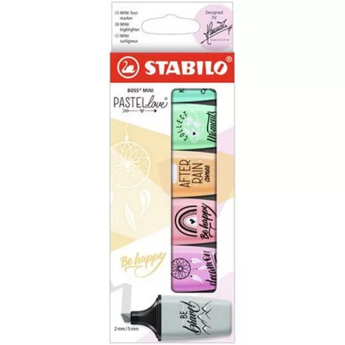 Kicsi, de erős: a STABILO BOSS MINI Pastellove egy igazán trendi újdonság, mely már szinte nélkülözhetetlen a pasztell színek rajongói és a kreatív egyéniségek számára.