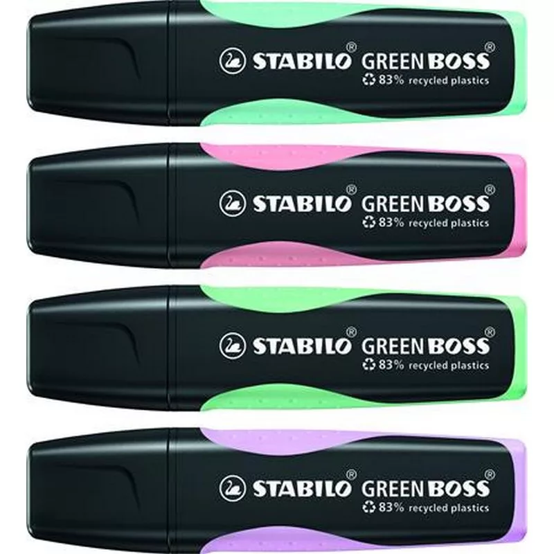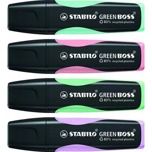 Szövegkiemelő készlet, 2-5 mm, STABILO "Green Boss Pastel", 4 különböző szín. - /készlet (4 db)