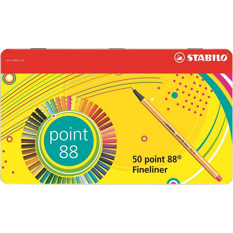 Tűfilc készlet, 0,4 mm, fém doboz, STABILO "Point 88", 47+3 különböző szín. - /készlet (50 db)