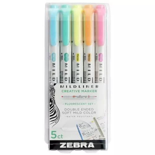 Szövegkiemelő készlet, 1,4/4,0 mm, kétvégű, ZEBRA "Mildliner Fluorescent", 5 szín. - /készlet (5 db)