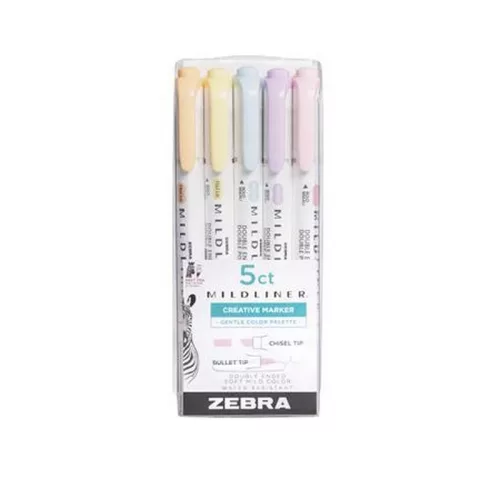 Szövegkiemelő készlet, 1,4/4 mm, kétvégű, ZEBRA "Mildliner Highlighter Gentle", 5 különböz.... - /készlet (5 db)