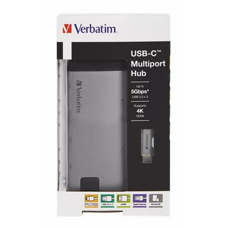 USB elosztó-HUB, USB-C/USB 3.0/HDMI/Ethernet/SD/microSD, VERBATIM. - /db