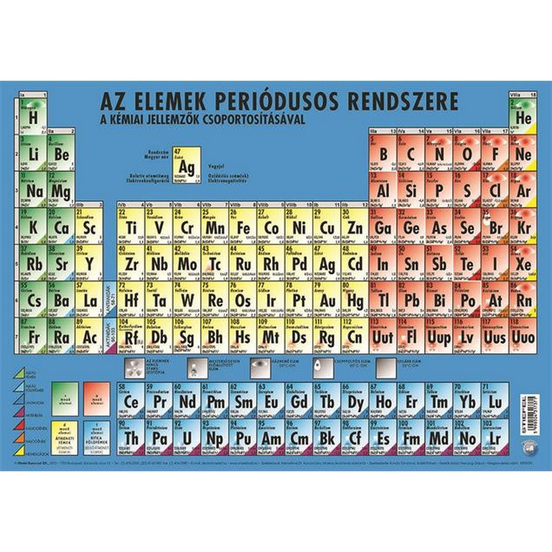 Az egyes elemek fizikai illetve kémiai jellemzőit a tabló két oldalán ábrázoltuk. Az előoldalon a kémiai tulajdonságok kaptak hangsúlyt az egyes mezők adatai között, míg a hátoldalon a fizikai jellemzők. Természetesen a rendszám és egyéb alapvető információk mindkét oldalon egyaránt megtalálhatók.