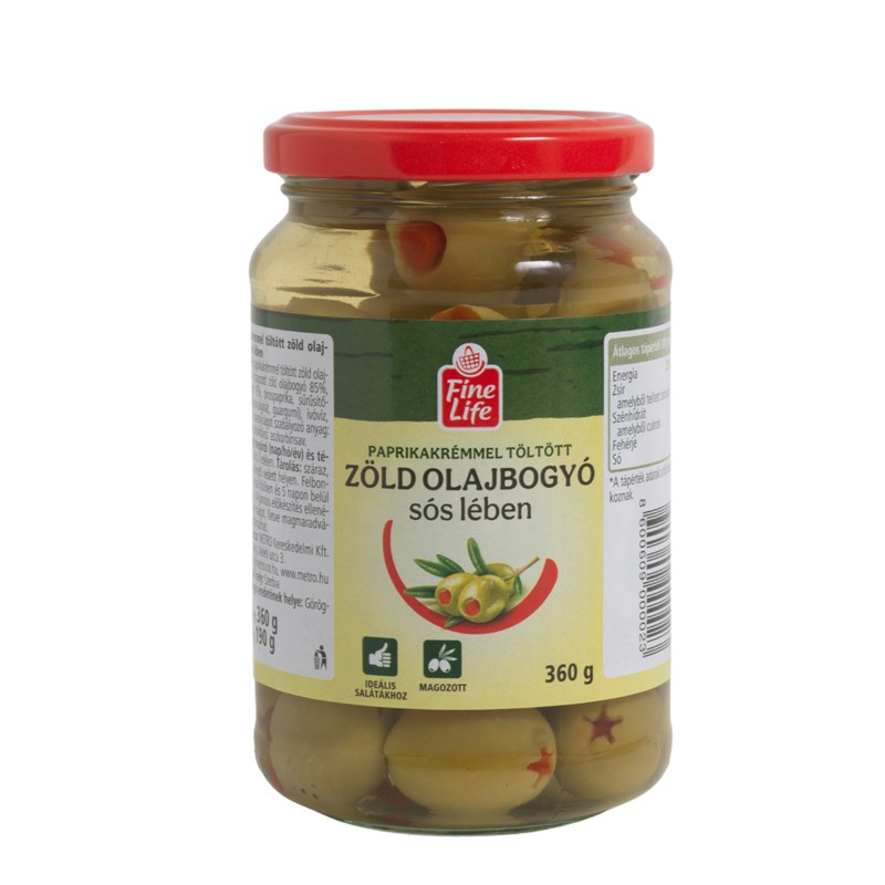 FINE LIFE Paprikával Töltött Zöld Olajbogyó 360g